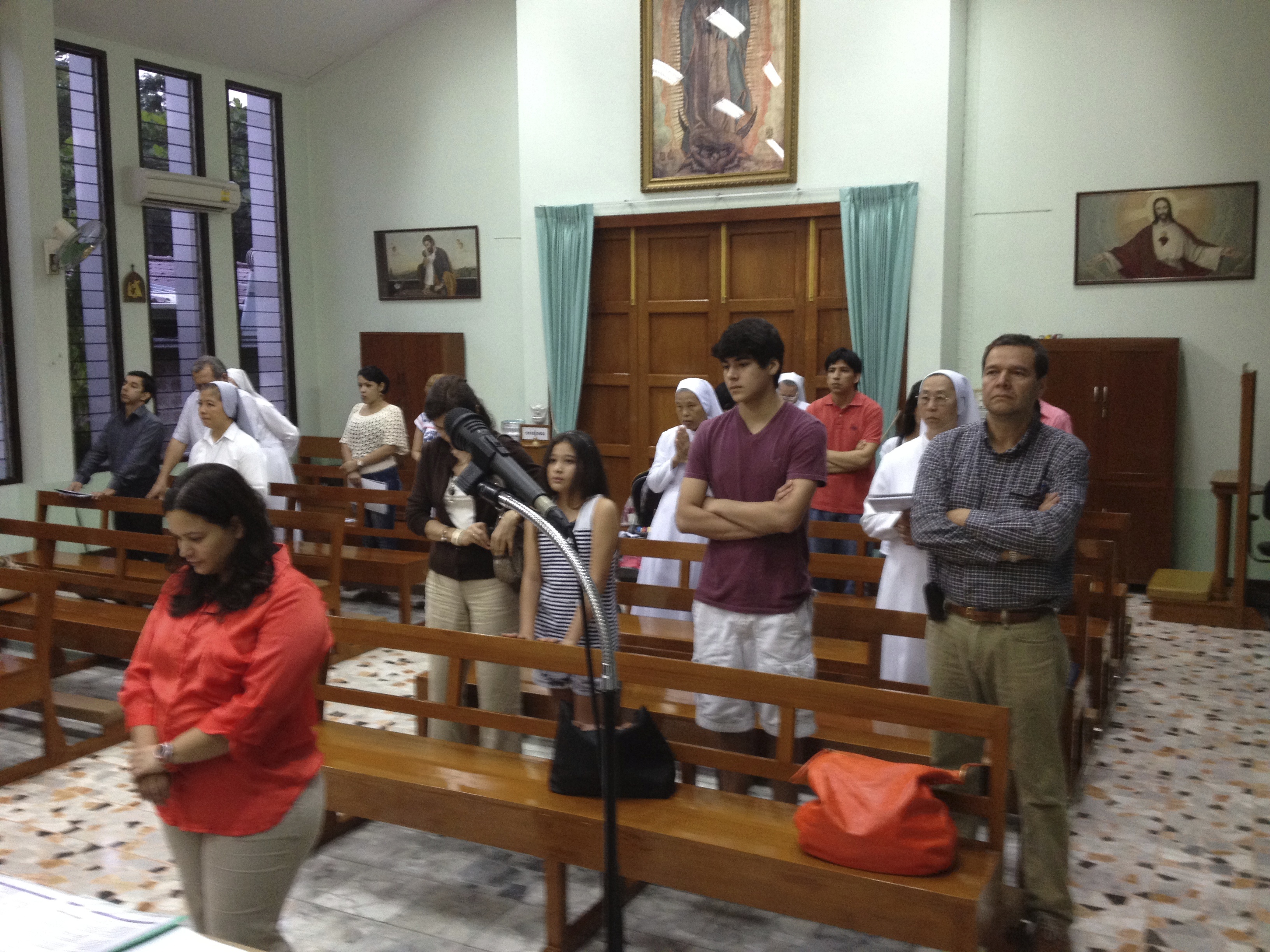 Les adjuntamos las fotos de la Misa de Acción de Gracias y convivio comunitario de anoche cuando despedimos al P. Juan Pablo, quien después de casi año y medio de asistirnos y celebrar la Eucaristía en Saladaeng, se marcha para comenzar a transitar esta nueva etapa de su camino misionero en Maehongson. Dios lo bendiga al P. Juan Pablo en este nuevo andar y lo encomendamos a sus oraciones. Y como broche de oro, nuestro amigo Luis Acosta, arpista extraordinario, nos regalo su arte ejecutando piezas típicas de Colombia, Venezuela, Paraguay, Mexico y Argentina. Esperamos que disfruten este corto…..