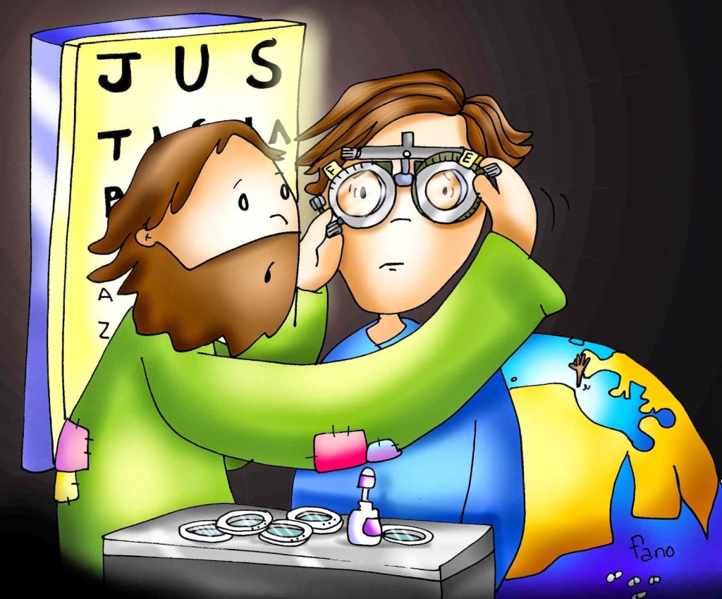 Si se fijan en la ilustración que les compartimos hoy, ven a Jesús acomodando los lentes en las gafas de un niño o jóven. ¿Por qué? Pues para descubrir lo que Jesús significa y es para cada uno de nosotros, tenemos que tener los ojos del corazón muy, pero muy abiertos, abiertos a todos nuestros hermanos para poder ver el rostro amoroso de Jesús en cada uno de ellos.