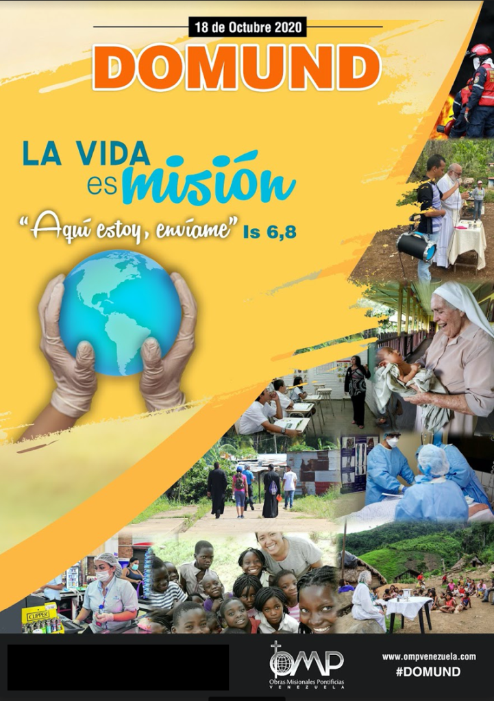 La celebración la Jornada Mundial de la Misión también significa reafirmar cómo la oración, la reflexión y la ayuda material de sus ofrendas son oportunidades para participar activamente en la misión de Jesús en su Iglesia. La caridad, que se expresa en la colecta de las celebraciones litúrgicas del tercer domingo de octubre, tiene como objetivo apoyar la tarea misionera realizada en mi nombre por las Obras Misionales Pontificias, para hacer frente a las necesidades espirituales y materiales de los pueblos y las iglesias del mundo entero y para la salvación de todos.