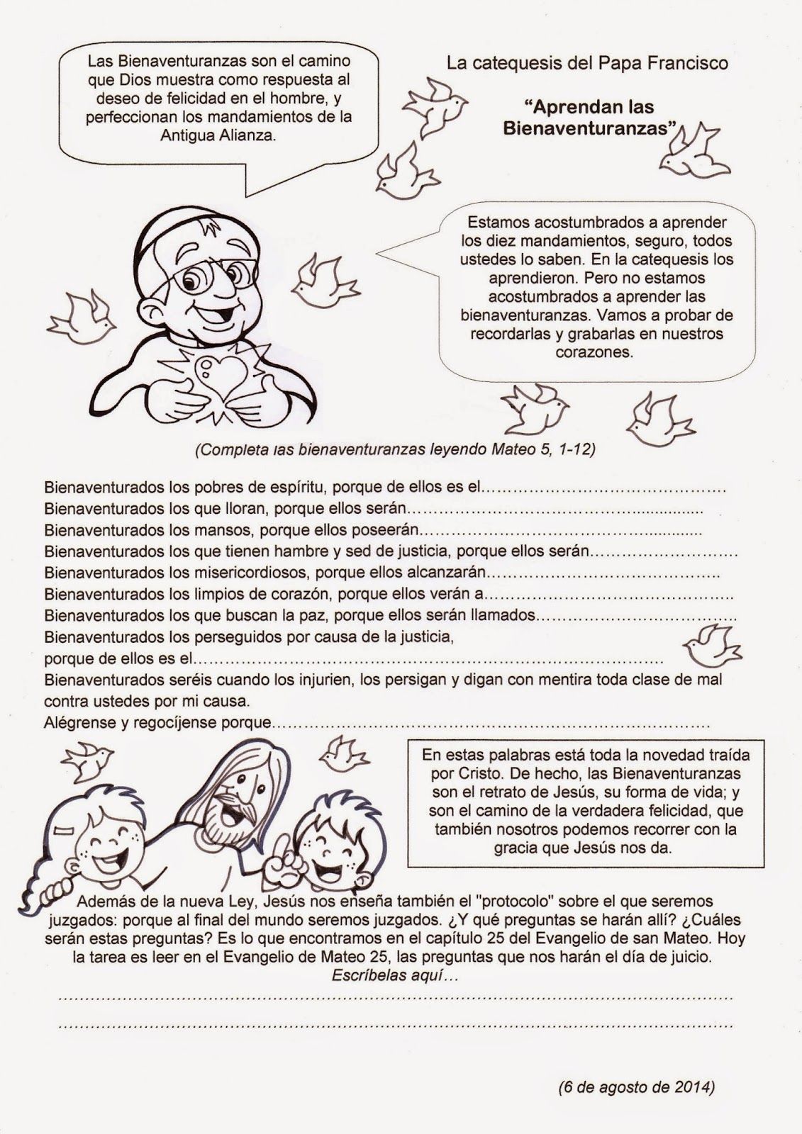 ¿Qué les parece, amiguitos? ¿Aceptamos esta invitación? ¡Claro, que si! Cada día, tratemos de memorizar una, pensando en algún ejemplo concreto.Y recordemos que, como dice el Santo Padre Francisco, las Bienaventuranzas son el camino de la verdadera felicidad.. ¡la felicidad que solo encontramos en Jesús!