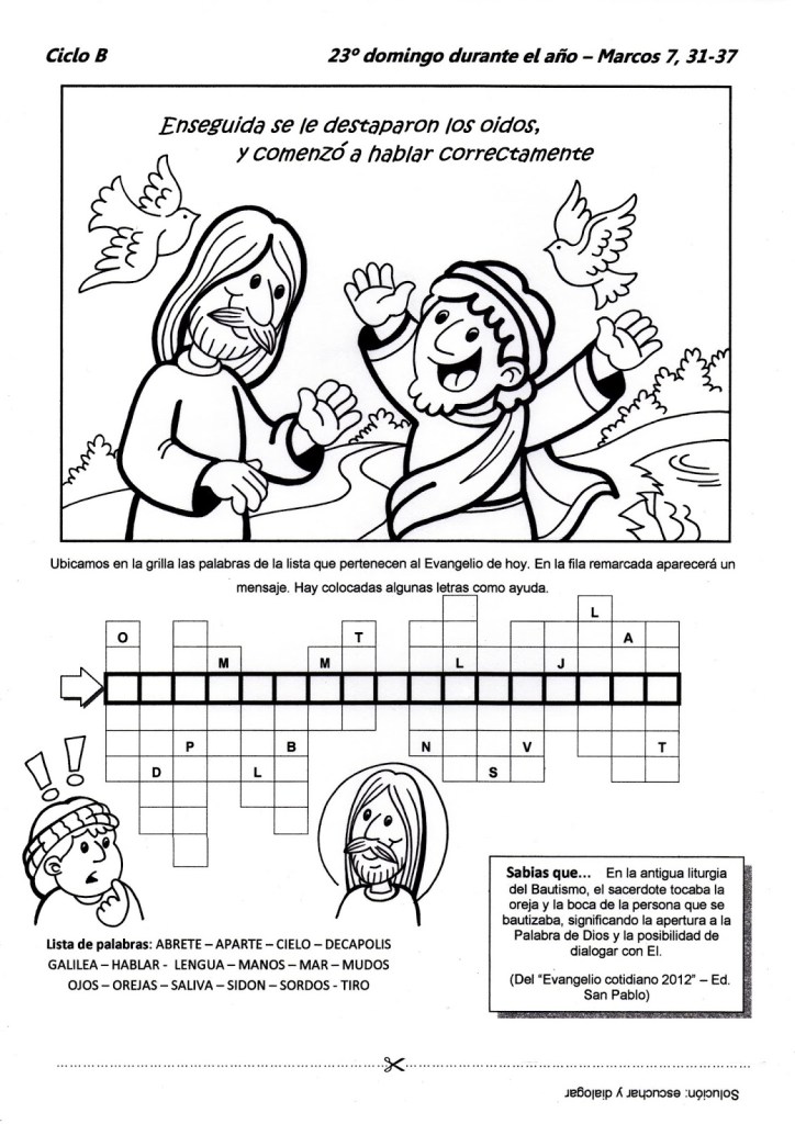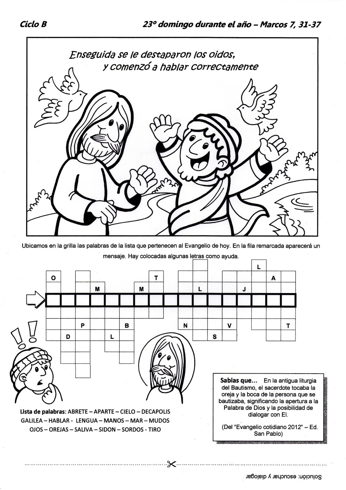 Como decíamos al comienzo, el hablar es un acto que aprendemos desde niños. Aún las personas que por motivos físicos no pueden hablar u oír, tienen medios para comunicarse – lenguaje de signos, computadoras, audífonos. Pero el «hablar» no es lo mismo que «dialogar» y para ello necesitamos nada más ni nada menos que abrirnos... podemos entonces decir que la palabra clave en este pasaje es «Ábrete» – este es el significado de la palabra «Éfatá» que aparece en el dibujo con el que comenzamos.