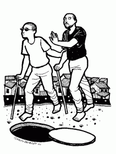 La ceguera aquí es tanto espiritual como física. El ciego es el que ignora la enseñanza del dos semanas anteriores, que hace hincapié en cambiar la actitud hacia los pobres, amar a los enemigos, compartir los bienes. Es un llamado a la lucidez ya la humildad.
