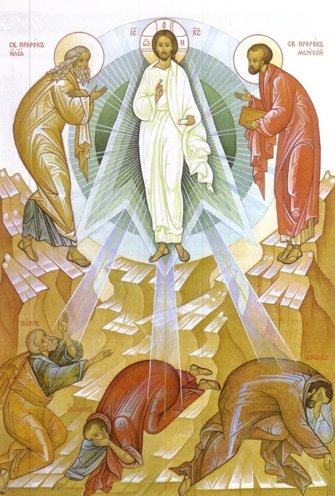 Jesús tomó a Pedro, Juan y Santiago, y subió a la montaña para orar. Mientras oraba, su rostro cambió de aspecto y sus vestiduras se volvieron de una blancura deslumbrante. Y dos hombres conversaban con Él: eran Moisés y Elías, que aparecían revestidos de gloria y hablaban de la partida de Jesús, que iba a cumplirse en Jerusalén.