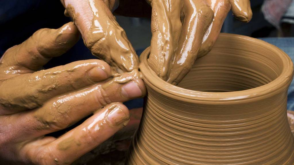 Yo bajé al taller del alfarero, mientras él trabajaba en el torno.