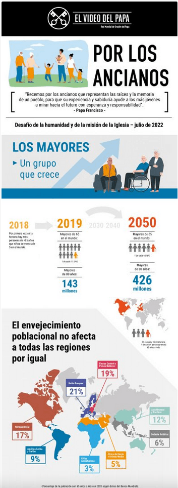 Recemos por los ancianos, que se conviertan en maestros de ternura para que su experiencia y su sabiduría ayude a los más jóvenes a mirar hacia el futuro con esperanza y responsabilidad.