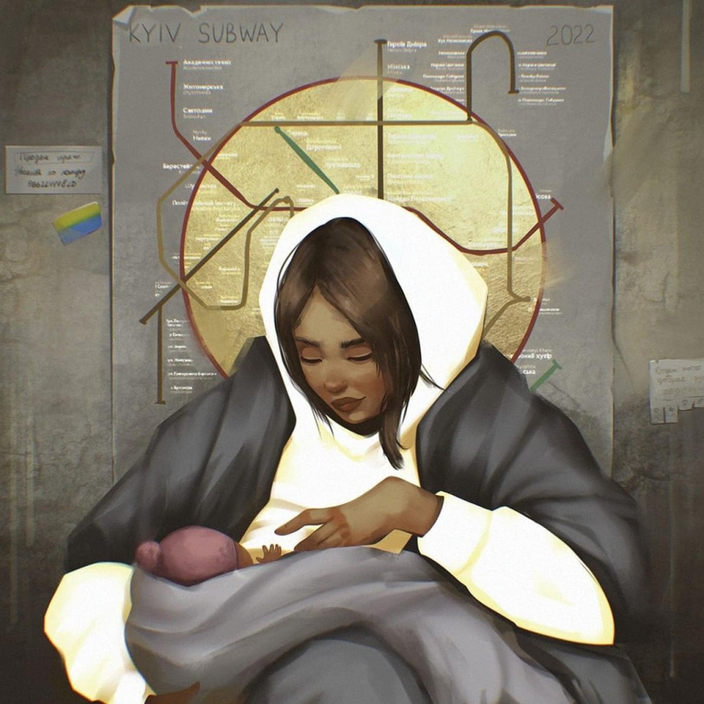 (Inspirada en una foto de una madre con un niño escondiéndose de los misiles en el subterráneo de Kyiv)