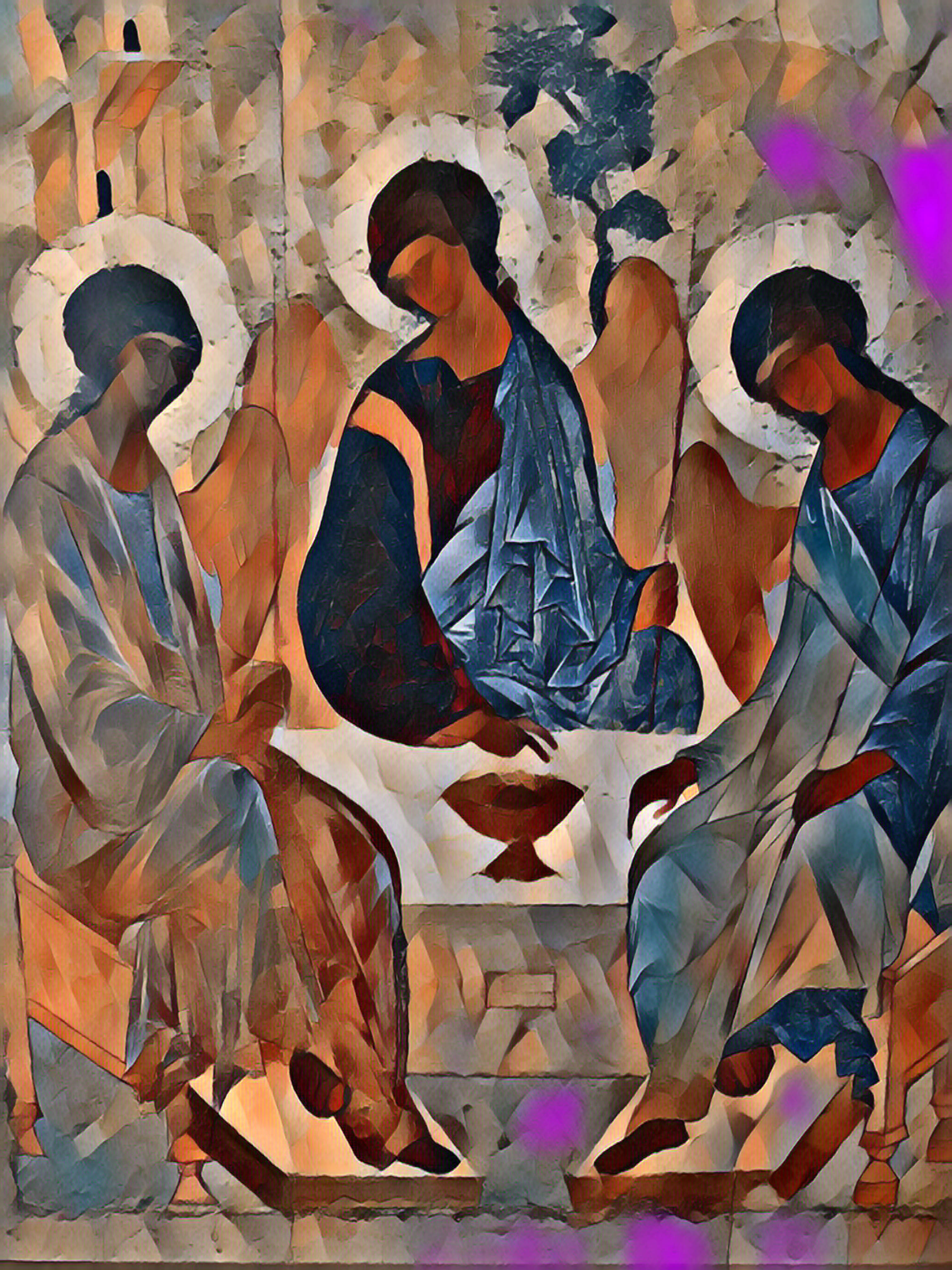 El famoso icono de Rublev sugiere el amor que la Santísima Trinidad nos tiene en la humildad, la armonía y el amor mutuo de las tres personas. Notamos el espacio al frente de la mesa que nos invita a compartir este amor y esta vida. En acción de gracias, recemos la bendición de San Pablo esta semana, que “la gracia del Señor Jesucristo, el amor de Dios y la comunión del Espíritu Santo estén con todos nosotros”.