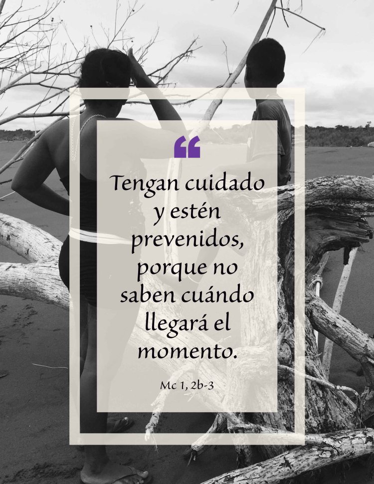 Tengan cuidado y estén prevenidos, porque no saben cuándo llegará el momento. Será como un hombre que se va de viaje, deja su casa al cuidado de sus servidores, asigna a cada uno su tarea, y recomienda al portero que permanezca en vela.