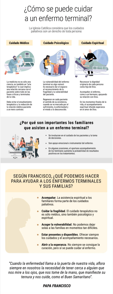 No se trata de prolongar innecesariamente el sufrimiento: al contrario, el Papa insiste en la importancia de los cuidados paliativos y de la familia, que -como escribió la Congregación para la Doctrina de la Fe en la carta Samaritanus bonus de 2020- “está al lado del enfermo y da testimonio de su valor único e irrepetible”.