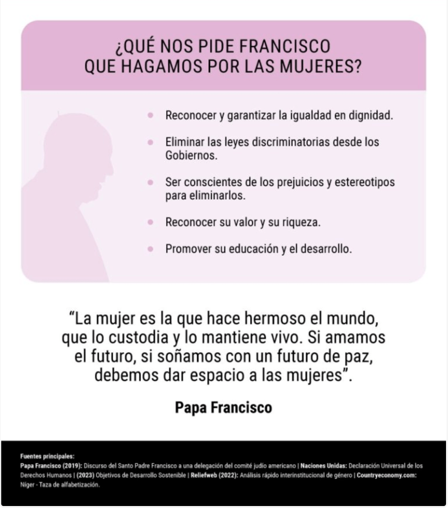Francisco: “Si no respetamos a las mujeres, nuestra sociedad no avanzará”