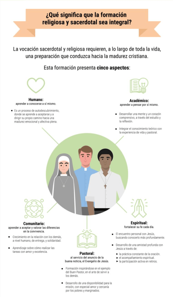 En la constitución apostólica Veritatis Gaudium, sobre las Universidades y Facultades Eclesiásticas, el Papa destaca que la formación integral de las vocaciones sacerdotales y religiosas debe abarcar tanto la dimensión humana como la espiritual, la pastoral y la comunitaria. Asimismo, debe tener en cuenta la diversidad cultural y social. En esa misma línea, Francisco retoma en el video este requerimiento e insiste en que la formación “los lleve a ser testigos creíbles del Evangelio”. En ese sentido, la formación no se trata únicamente de adquirir conocimientos, sino de una experiencia de encuentro profundo con Jesús.