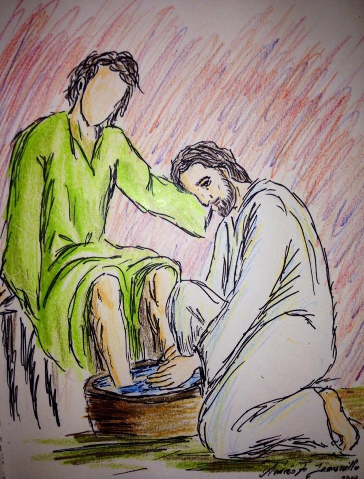 “No, le dijo Pedro, ¡Tú jamás me lavarás los pies a mí!” Jesús le respondió: “Si Yo no te lavo, no podrás compartir mi suerte”.