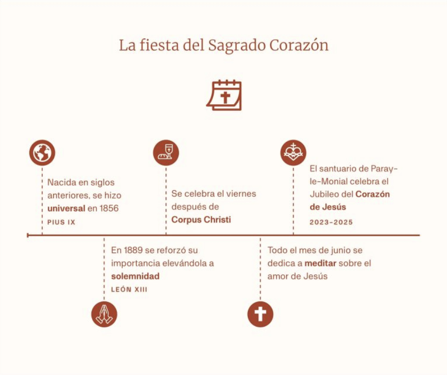 Tradicionalmente, la Iglesia dedica todo el mes de junio al Sagrado Corazón de Jesús, invitando a los creyentes a hacer suya la mirada de Cristo sobre la humanidad y a actuar con los sentimientos de su Corazón, sobre todo para aliviar el sufrimiento de los más débiles.