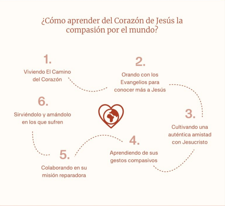 El P. Cristóbal Fones explica también que la misión de la Red Mundial de Oración del Papa se inscribe precisamente en la misión de compasión por el mundo que parte del Corazón de Jesús: “Nuestro itinerario de formación –El Camino del Corazón– ayuda a entrar en una misión de compasión por el mundo desde una relación de amistad con Jesús, no desde nuestro propio voluntarismo. Es un camino espiritual para sintonizar con el Corazón de Jesús, con el fin de tener un corazón más parecido al suyo y salir al encuentro de nuestros hermanos participando en su misión. La unión con Cristo hace que percibamos los desafíos del mundo con su mirada y nos movilicemos para afrontarlos mediante la oración y el servicio. Así -concluye el P. Fones-, este itinerario nos transforma cada día más en apóstoles de la oración, en discípulos misioneros para una misión de compasión por el mundo a la que todos están invitados”.