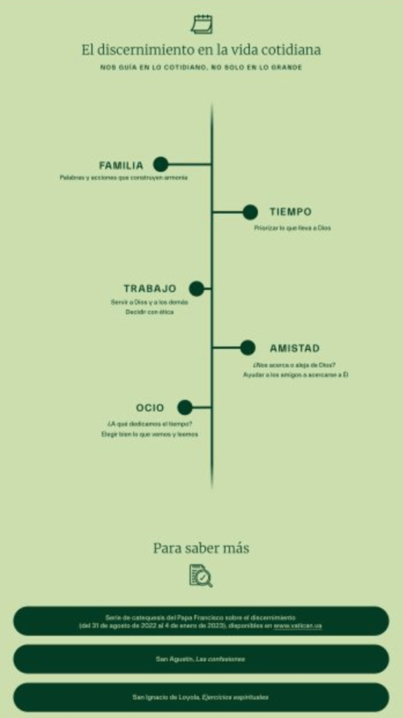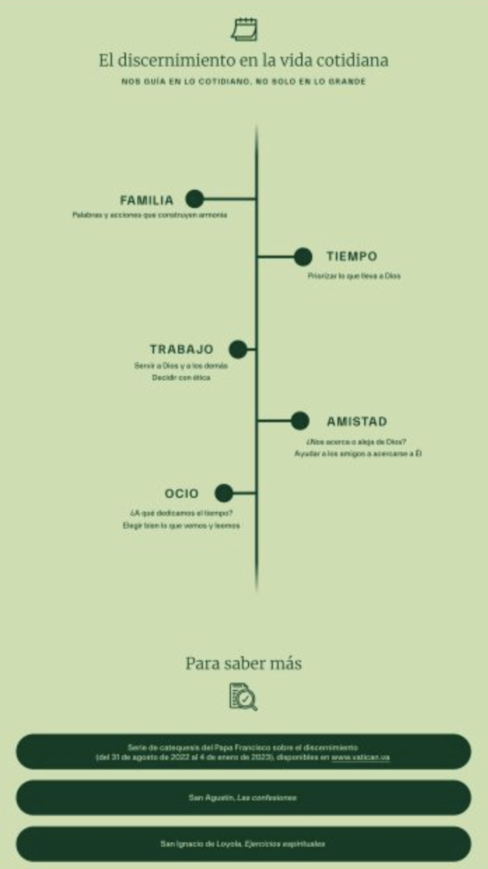 Hoy en día, sin embargo, el antiguo arte de discernir es quizá más necesario que nunca. La velocidad con la que se suceden los cambios en la actualidad, la ingente cantidad de información disponible -y no siempre verdadera-, la aparente realidad creada por la inteligencia artificial, y la complejidad de los desafíos globales, entre otros factores, hacen que el discernimiento sea una habilidad esencial para tomar decisiones acertadas que nos permitan vivir una vida buena y nos acerquen a Dios.